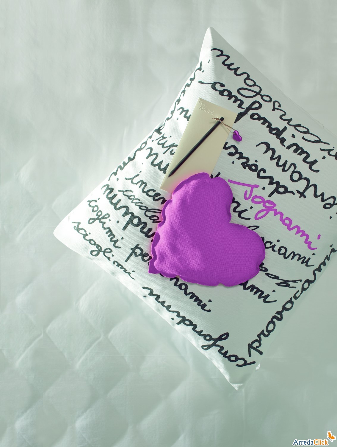 Una lavagnetta a cuore nella zona ufficio per prendere appunti, stoviglie a cuore in cucina per cucinare con amore i nostri piatti preferiti, lenzuola con i cuori a letto per pisolini pieni di coccole!