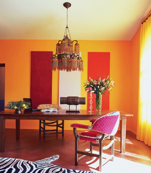 Questo colore è percepito come un colore vibrante, legato all’energia fisica e mentale, all’attività , alla creatività ; facilita l’attenzione, la concetrazione e lo studio, dunque adatto anche alle zona studio e alla camera dei ragazzi. I colori caldi come l’arancione, hanno un effetto eccitante e sono riconducibili alla tonicità e all’azione. Sarebbe consigliato evitarli nella camera da letto od utilizarli in modo moderato, mentre in un ingresso, che ha la funzione di accogliere chi entra in una casa, si dovrebbero privilegiare tali toni in modo che diano una sensazione di accoglienza e intimità .