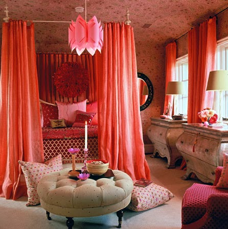 Arredare con l’arancione. Ambientazione Noire con trasparenti tende di voile. potete acquistare il tessuto per realizzare la versione sontuosa dell’immagine o acquistarne un modello già fatto QUI