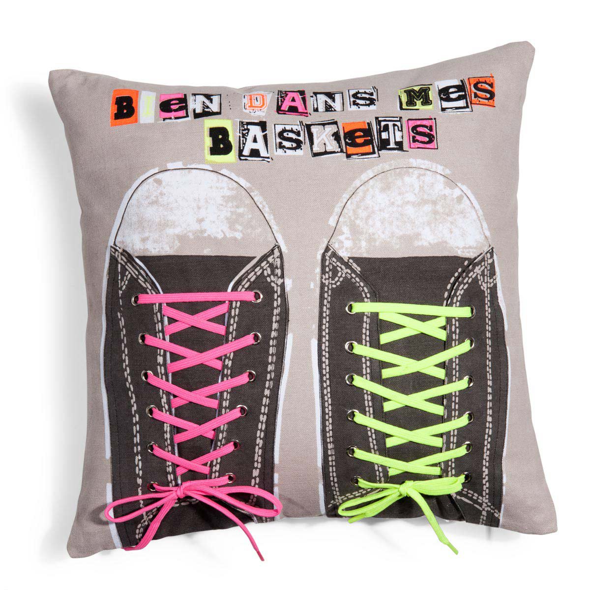 Questi cuscini sono dotati di una stampa all-over di vari modelli di scarpe disegnate dall’artista olandese Parra.