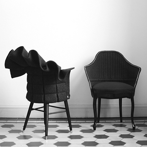 Fredrik Farg recover chairs. Il designer svedese è stato influenzato da classici capi sartoriali d’abigliamento, come abiti e giacche. Nuovi abiti trasformano sedie trovate nei mercatini delle pulci
