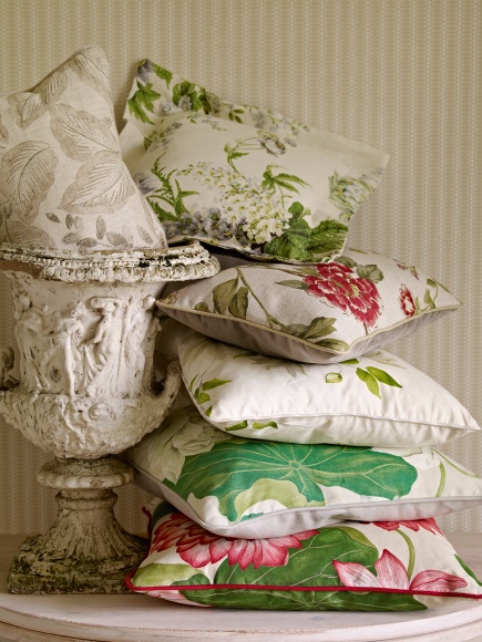 Cuscini confezionati con tessuti della collezione Barcelona  di  Designers Guild