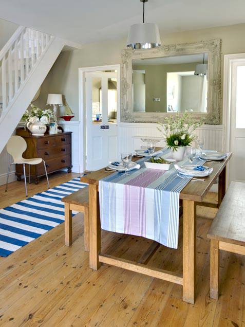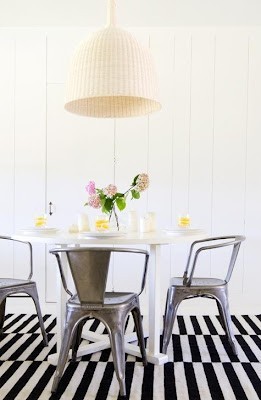 Non ho mai pensato alle righe come un motivo decorativo particolarmente affascinante, ma poi ogni volta che mi trovo davanti ad un interno decorato con delle righe, sento subito che queste suscitano in me una sensazione gradevole…mah, magia delle righe!