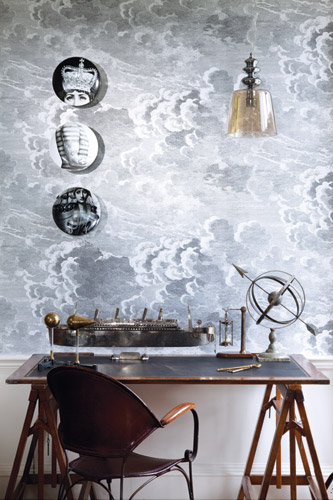 Dello Studio http://www.dwellstudio.com le Nuvole in Cartapesta Realizzate con Fogli di Libri d’Epoca Francesi in collaborazione con una Organizzazione No Profit