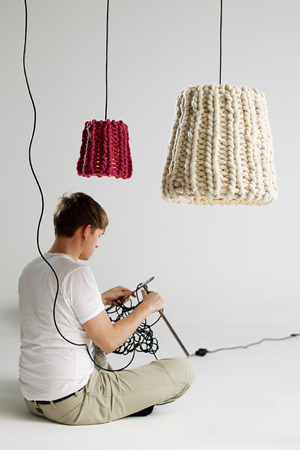 Tanti designers si sono cimentati con ferri di varie dimensioni, basta vedere Christien Meindertsma, che con ferri e gomitoli giganti costruisce tappeti o pouf davvero insoliti.