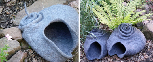 Katzenhoehle: Tane per Gatti! Creazioni in feltro realizzate a mano dall’Artista Tedesca Dornroeschen Filzunikte http://www.en.dawanda.com