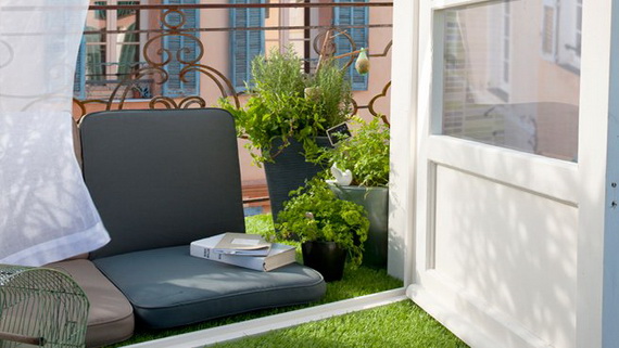 Posare un tappeto o una stuoia sul balcone ci permetterà oltre che di arredarlo in modo delizioso di camminare a piedi scalzi e di coprire pavimentazioni che non ci piacciono. Stiamo parlando di piccolissimi spazi e dunque, anche se non ci fidiamo del tempo e vogliamo tenere il tappeto pulito per camminare a piedi nudi, nulla ci impedisce di ‘levare e mettere’ il suddetto tappetino ogni volta che usiamo il piccolo balcone un po’ come la doccia!