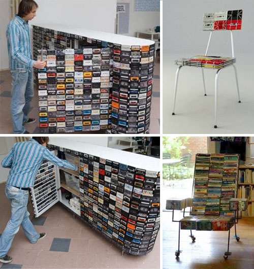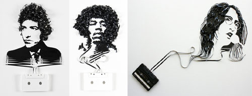 Anche gli artisti non disdegnano il riuso, lo sa bene Rossana Borzelli che ne da dimostrazione con le sue magnifiche porte o Erika Iris Simmons che nella sua incredibile serie dal titolo Ghost in the Machine, utilizza pellicole da musicassette riciclate e bobine di film vecchi per creare fantastici ritratti di artisti iconici e musicisti http://www.iri5.com.