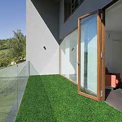 Se poi vogliamo proprio fantasticare e immaginare di uscire in giardino ogni volta che mettiamo piede sul nostro balconcino perchè non rivestire il pavimento con un prato sintetico? Basterà l’aggiunta di una piccola fontanella et voilà la magia sarà fatta!